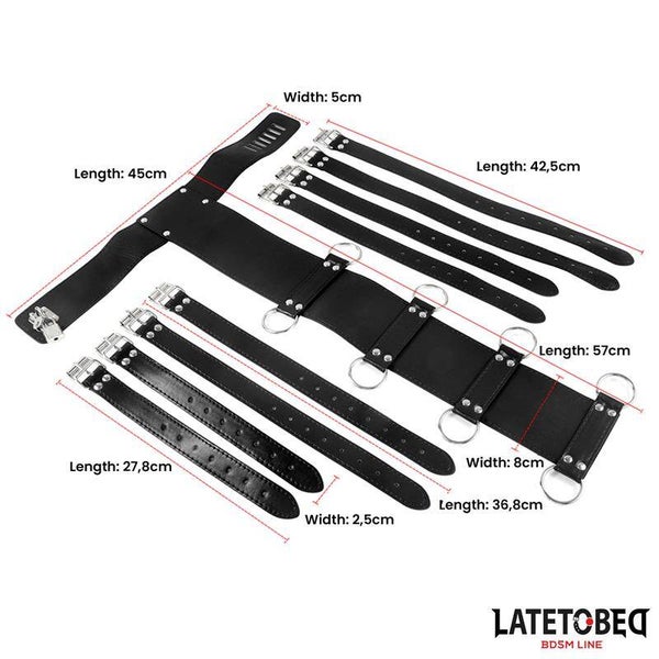 Affirmez votre autorité et prenez le contrôle de la situation grâce à ce harnais dorsal. Il est équipé d'un large collier et de quatre paires de menottes. Les menottes et le collier sont entièrement réglables grâce à des boucles et sont munis d'un verrou pour vous permettre de garder le contrôle en toutes circonstances.
